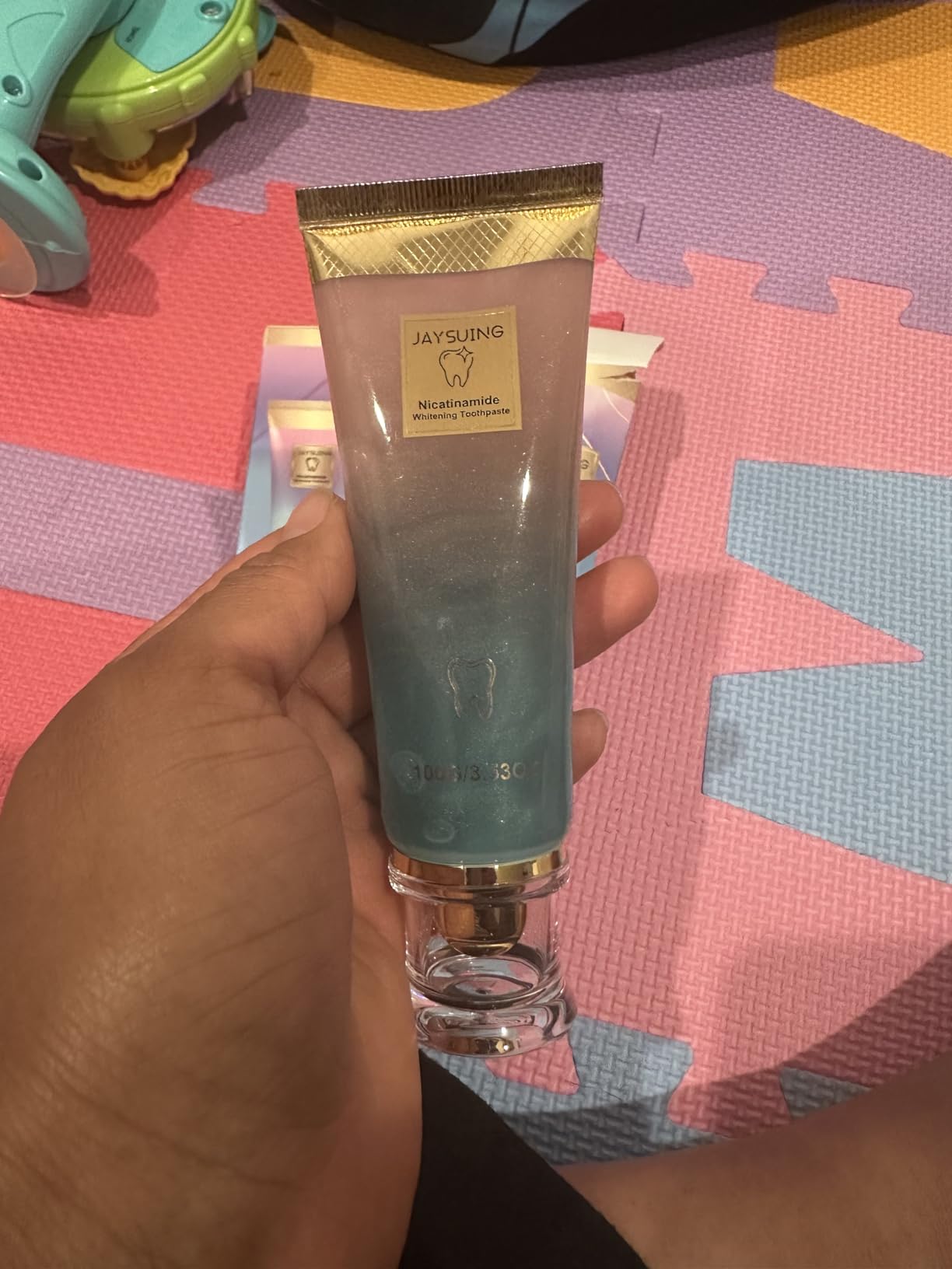 Our Niacinamide Whitening Toothpaste gently removes tough stains, leaving your teeth visibly whiter with every use.