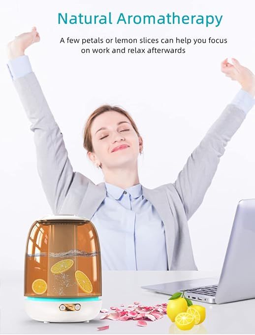 The whisper-quiet operation ensures a peaceful atmosphere, making it ideal for bedrooms, offices, nurseries, and yoga spaces. The LED night light feature adds a soft, soothing glow that enhances relaxation and promotes better sleep.
